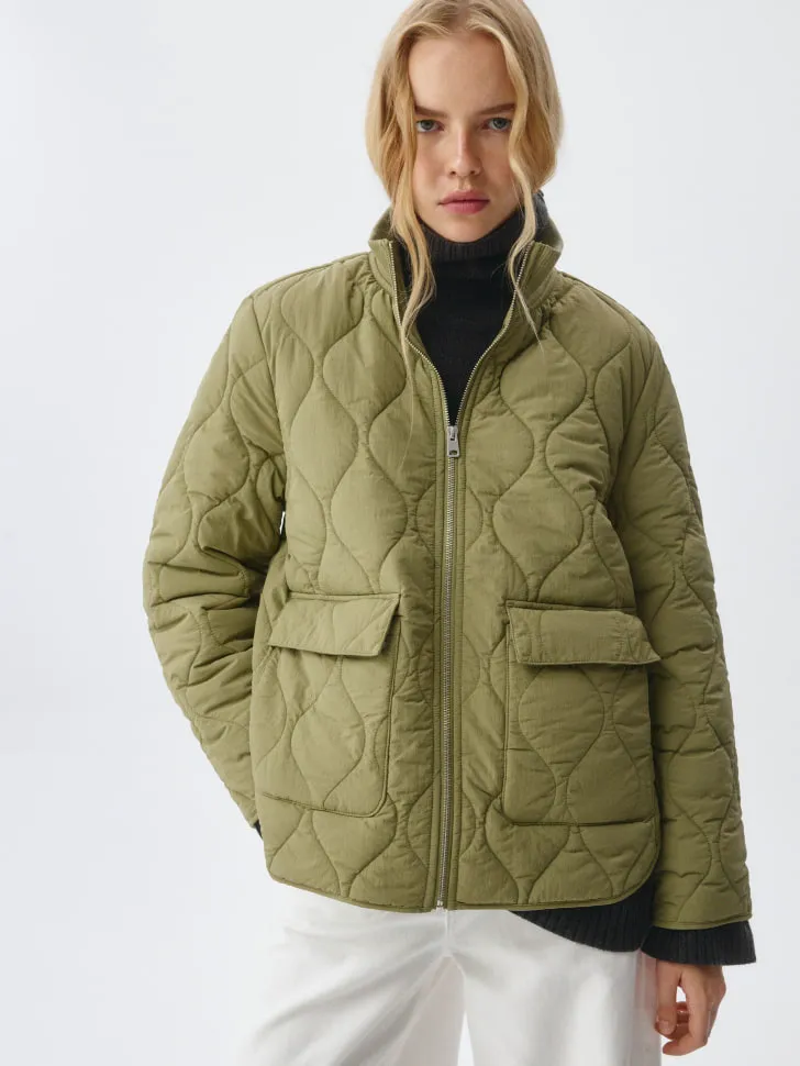 Откройте для себя идеальное сочетание стиля и комфорта с нашей новой стеганой курткой оверсайз! Эта модель, выполненная в трендовом оливковом цвете, станет незаменимой частью вашего гардероба на весну и осень. Ее свободный крой оверсайз не только подчеркивает актуальные модные тенденции, но и обеспечивает максимальную свободу движений, позволяя создавать многослойные и уютные образы.