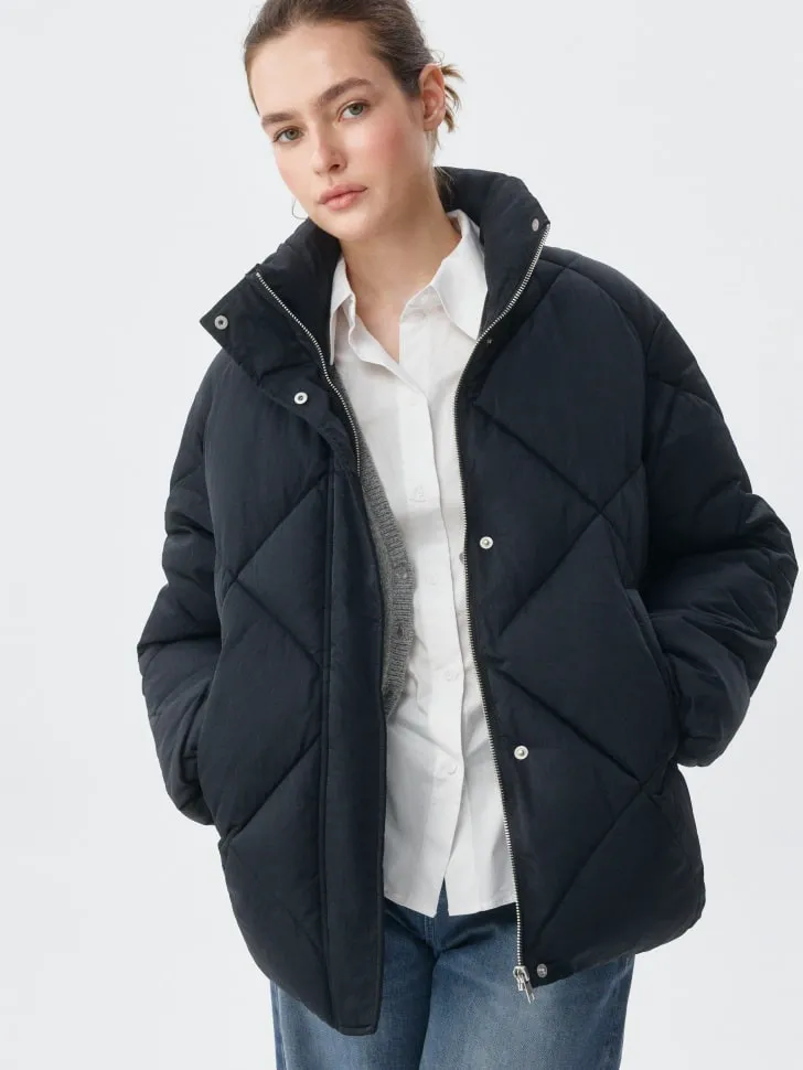 Стёганая оверсайз куртка с высоким воротником, арт. 11723