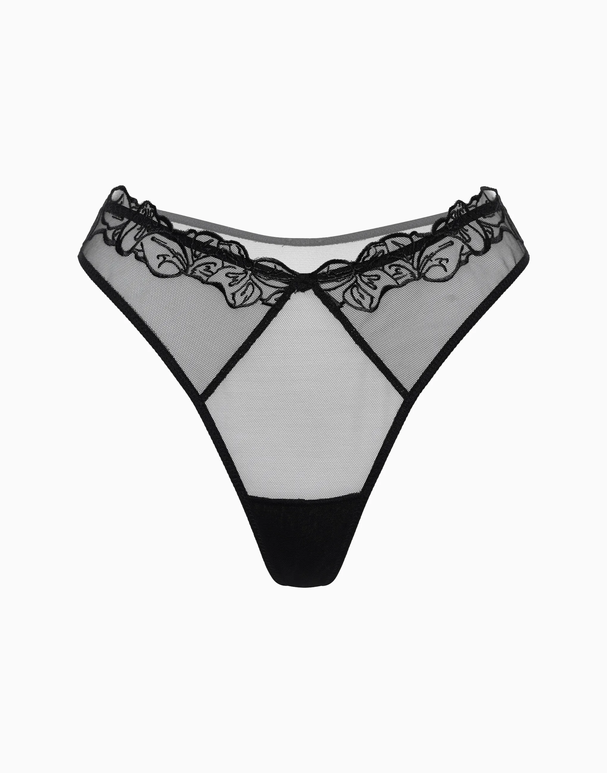 Трусики стринги из сетки с вышивкой средняя посадка, черный, арт. 4670393536835
