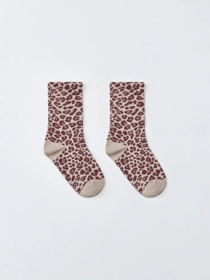 Наши носки изготовлены из высококачественных материалов, обеспечивающих исключительный комфорт и долговечность. Мягкая и дышащая ткань гарантирует приятные ощущения в течение всего дня, а прочные волокна сохраняют форму и яркость принта даже после многократных стирок. Леопардовый узор, выполненный с особым вниманием к деталям, выглядит реалистично и стильно, привлекая восхищенные взгляды. Они идеально подходят как для создания дерзких повседневных образов, так и для дополнения вечерних нарядов, когда хочется добавить немного экстравагантности. Откройте для себя новые грани стиля с этим уникальным аксессуаром, который не оставит равнодушным ни одного ценителя моды!