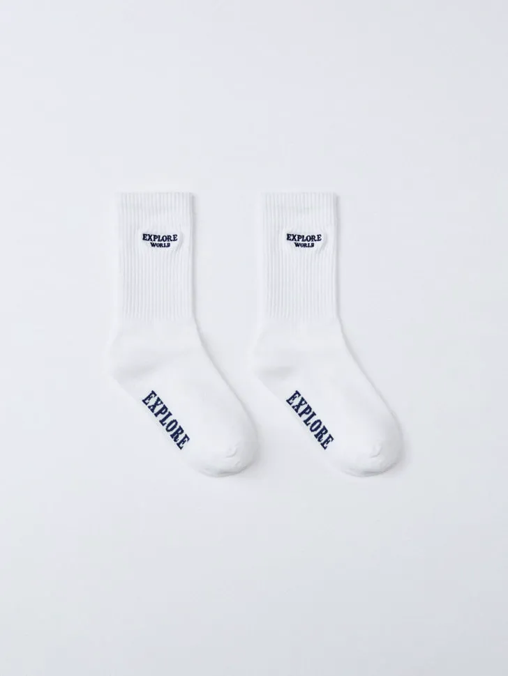 Носки с жаккардовой надписью и вышивкой, белый, арт. 4981