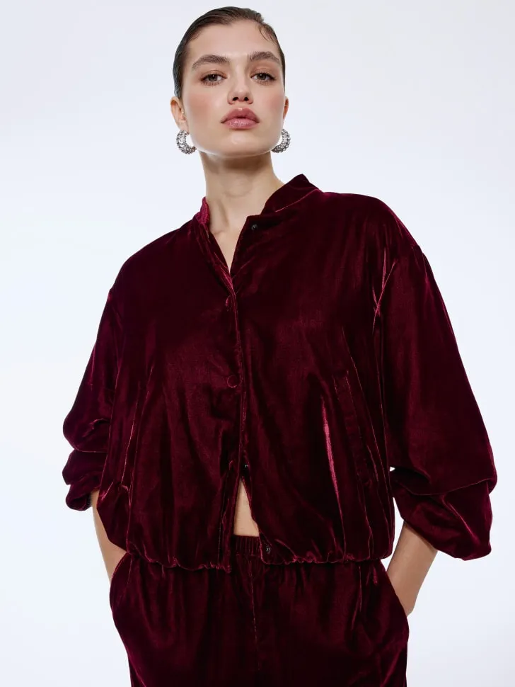 Бомбер оверсайз из велюра, бордовый, арт. 15676