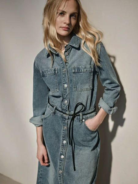 Платья и сарафаныОткройте для себя идеальное сочетание комфорта и современного стиля с джинсовым платьем макси от SELA. Это универсальное платье, выполненное из качественного голубого денима, станет вашей любимой вещью на любой сезон. Его элегантный крой "рубашка" с пуговицами по всей длине и практичные карманы делают его не только стильным, но и невероятно функциональным.