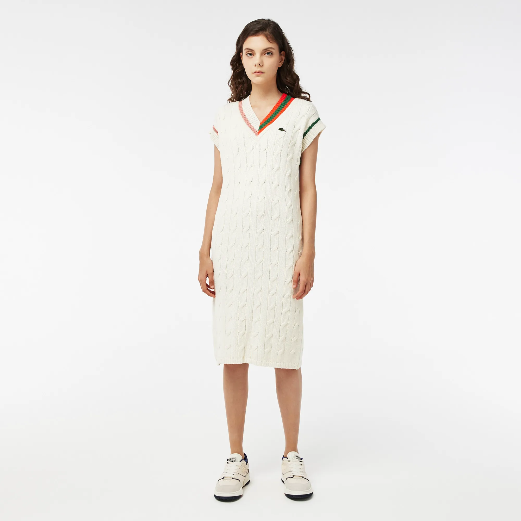 Платье Lacoste с орнаментом и V-образным вырезом, белый, арт. ef2421