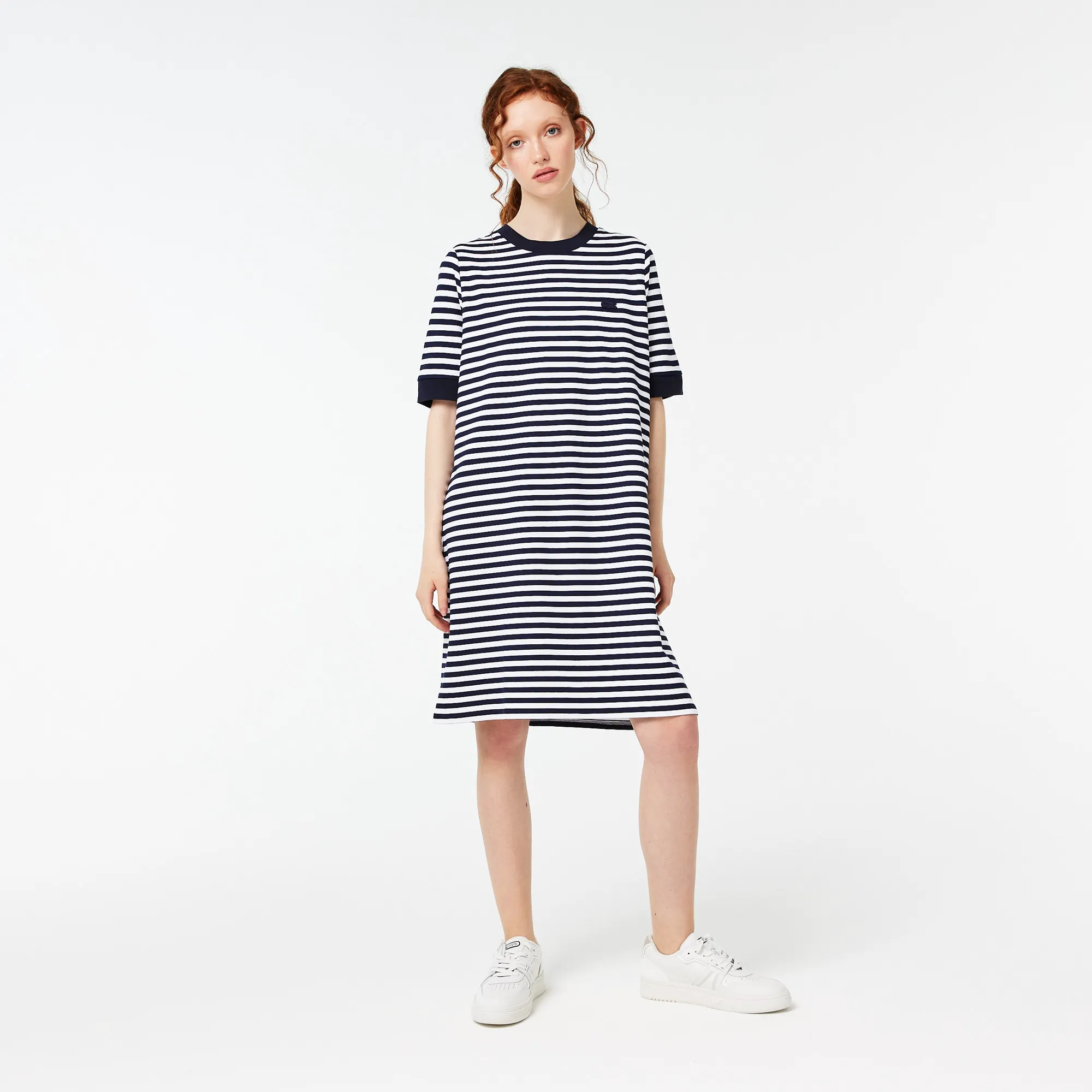 Представляем вашему вниманию изысканное женское платье Lacoste в классическую полоску – идеальное сочетание комфорта, стиля и безупречного качества, присущего легендарному бренду. Это платье станет незаменимой вещью в вашем гардеробе, позволяя создавать безукоризненные образы для самых разных случаев. Сине-белая полоска – это не просто принт, это символ морской элегантности и свежести, который никогда не выходит из моды.