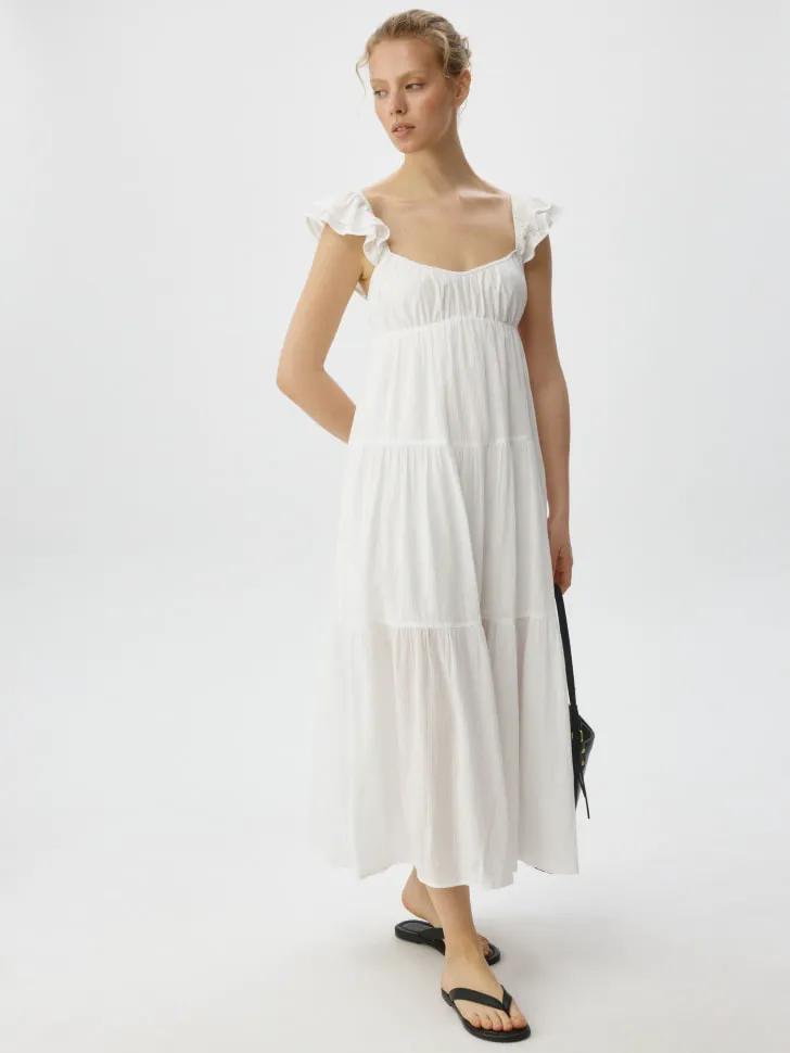 Свободный, струящийся крой и универсальная длина макси делают это платье подходящим для самых разных случаев: от неформальных прогулок и встреч с друзьями до более официальных летних мероприятий. Оно легко комбинируется с различными аксессуарами и обувью, позволяя создавать множество стильных образов. Инвестируйте в свой комфорт и стиль с этим невероятно практичным и красивым платьем, которое станет основой вашего летнего гардероба. Откройте для себя идеальное сочетание функциональности и модной элегантности, выбирая наше платье макси из муслина.