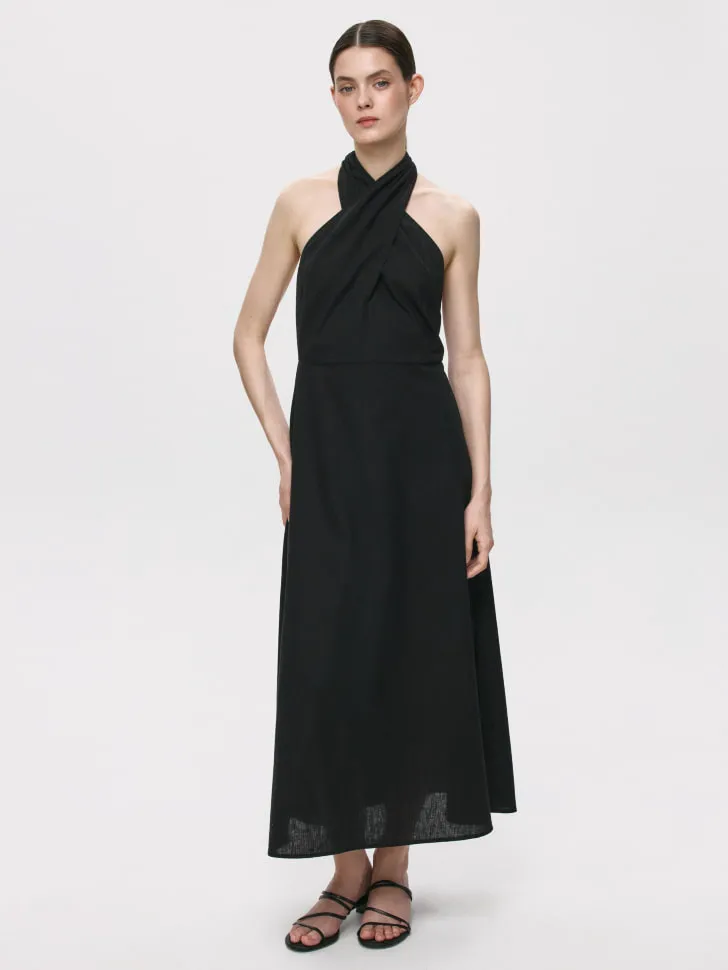 Платье макси из смесового льна и хлопка, арт. 10869