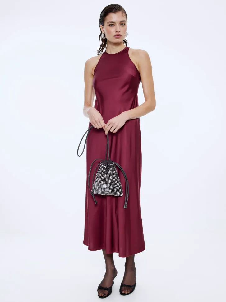 Изготовленное из премиального вискозного сатина, это платье мягко облегает фигуру, подчеркивая ее достоинства и создавая грациозный и женственный образ. Длина миди универсальна и позволяет комбинировать платье как с каблуками для вечернего выхода, так и с более повседневной обувью для дневных мероприятий. Деликатный дизайн с высоким воротником и открытыми плечами добавляет утонченности. Будьте в центре внимания, выбирая наряд, который говорит сам за себя о вашем безупречном вкусе.