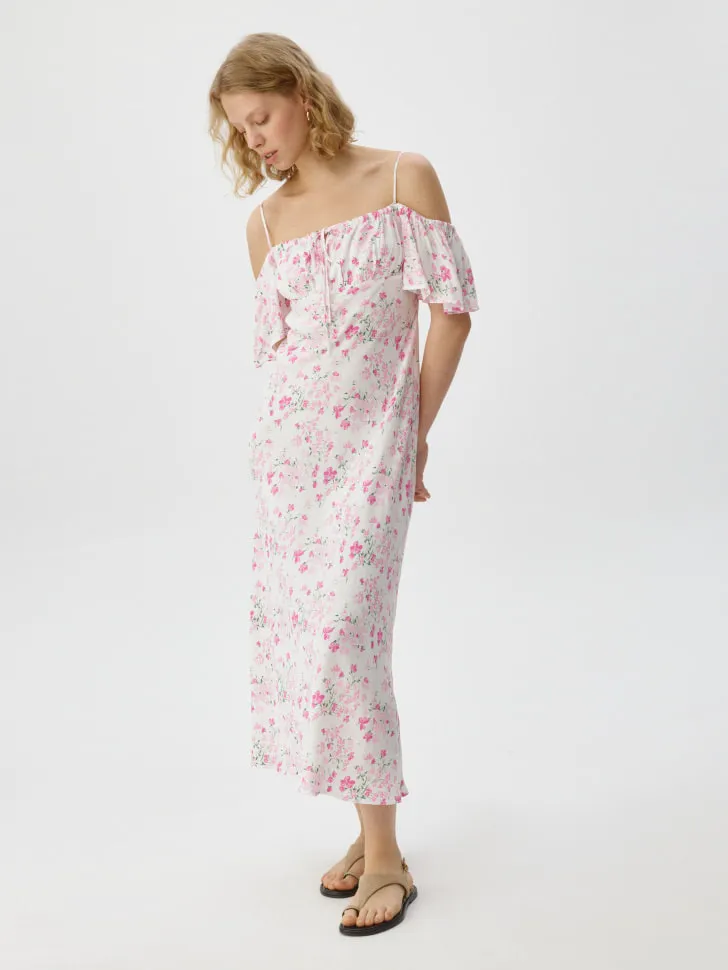 Наше миди-платье идеально подходит для различных случаев: от повседневных выходов до особых мероприятий. Его универсальный крой лестно смотрится на любой фигуре, а нежная ткань красиво струится, создавая изящный силуэт. Сочетайте его с любимыми сандалиями для расслабленного образа или добавьте каблуки и стильные украшения для более торжественного вида. 👗 Позвольте себе наслаждаться каждым моментом, чувствуя себя абсолютно великолепно!