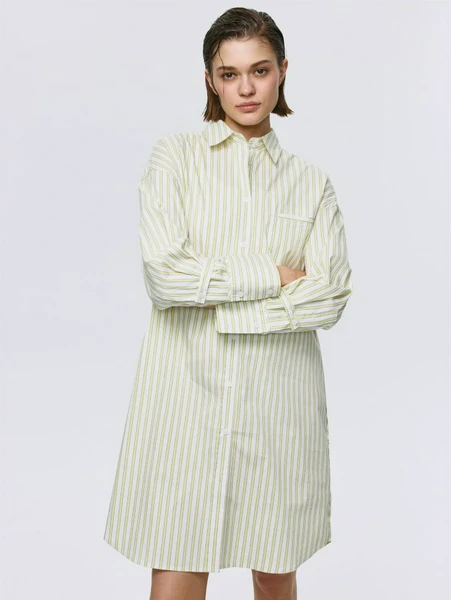 Дизайн платья-рубашки SELA вдохновлен классическими элементами, но при этом предлагает современную интерпретацию: свободный крой обеспечивает полную свободу движений, а стильные белые полоски на нежном салатовом фоне создают свежий и динамичный образ. Это платье легко адаптируется под любой случай: