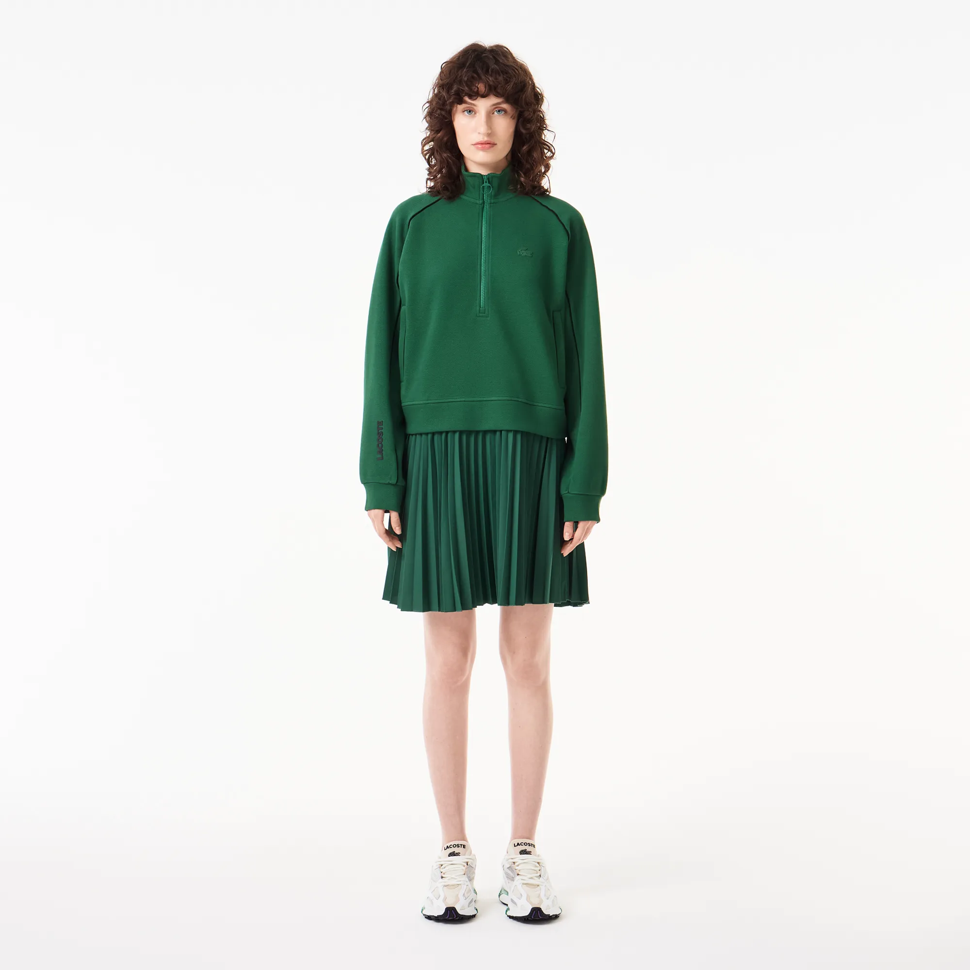 Плиссированное платье-толстовка Lacoste на молнии, зеленый, арт. ef2516