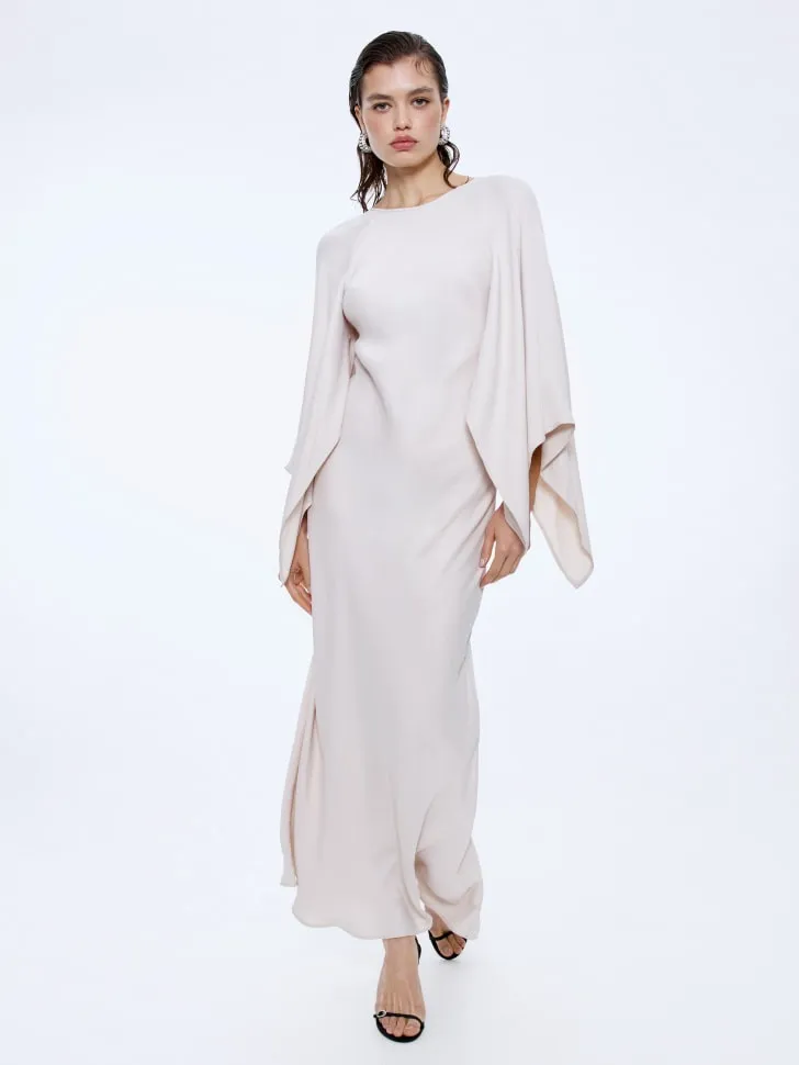 Сатиновое платье с широкими рукавами, бежевый, арт. 15622