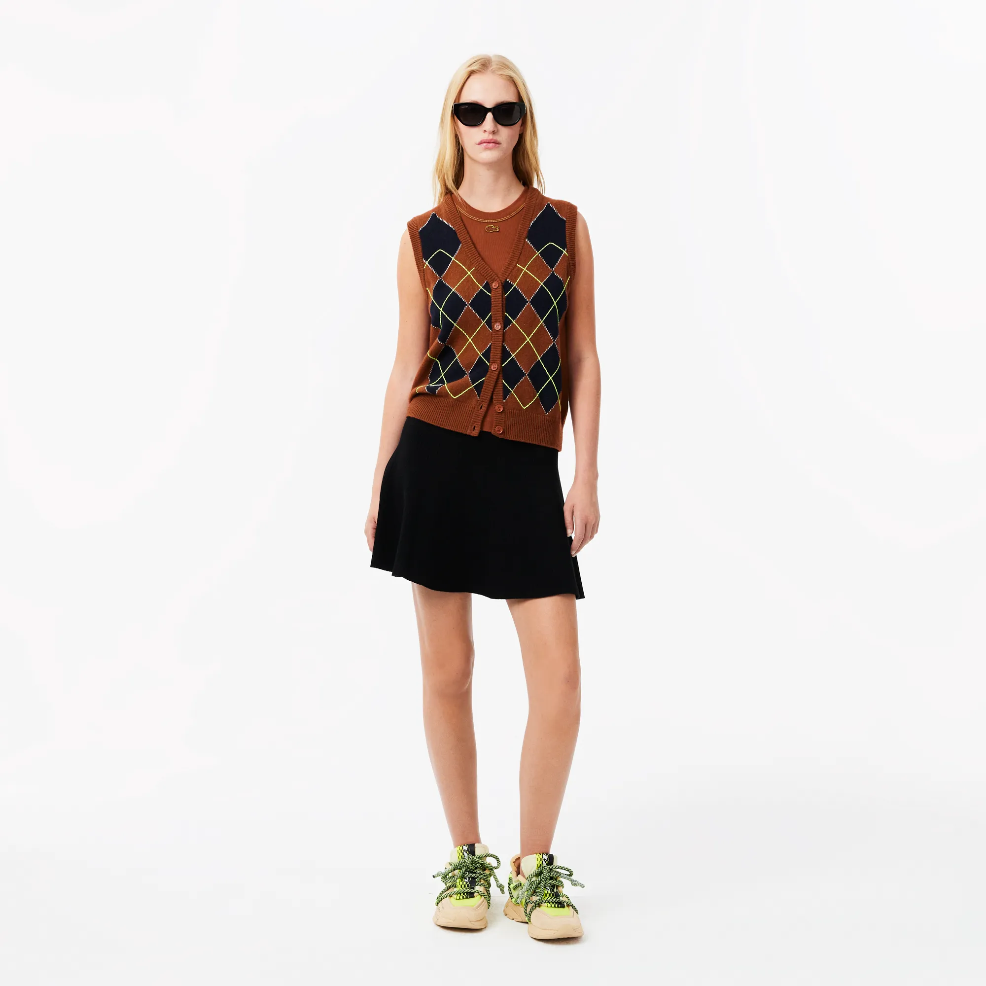 Универсальный чёрный цвет делает эту юбку незаменимым элементом базового гардероба. Она легко комбинируется как с классическими блузками и пиджаками, так и с более повседневными свитерами или кардиганами. Расклешенный крой изящно подчеркивает талию и бедра, создавая летящий силуэт, который подходит для различных типов фигур. При этом юбка не сковывает движений, обеспечивая максимальную свободу и комфорт. Это не просто предмет одежды, это инвестиция в ваш стиль и уверенность. С юбкой Lacoste вы всегда будете выглядеть безупречно и актуально.