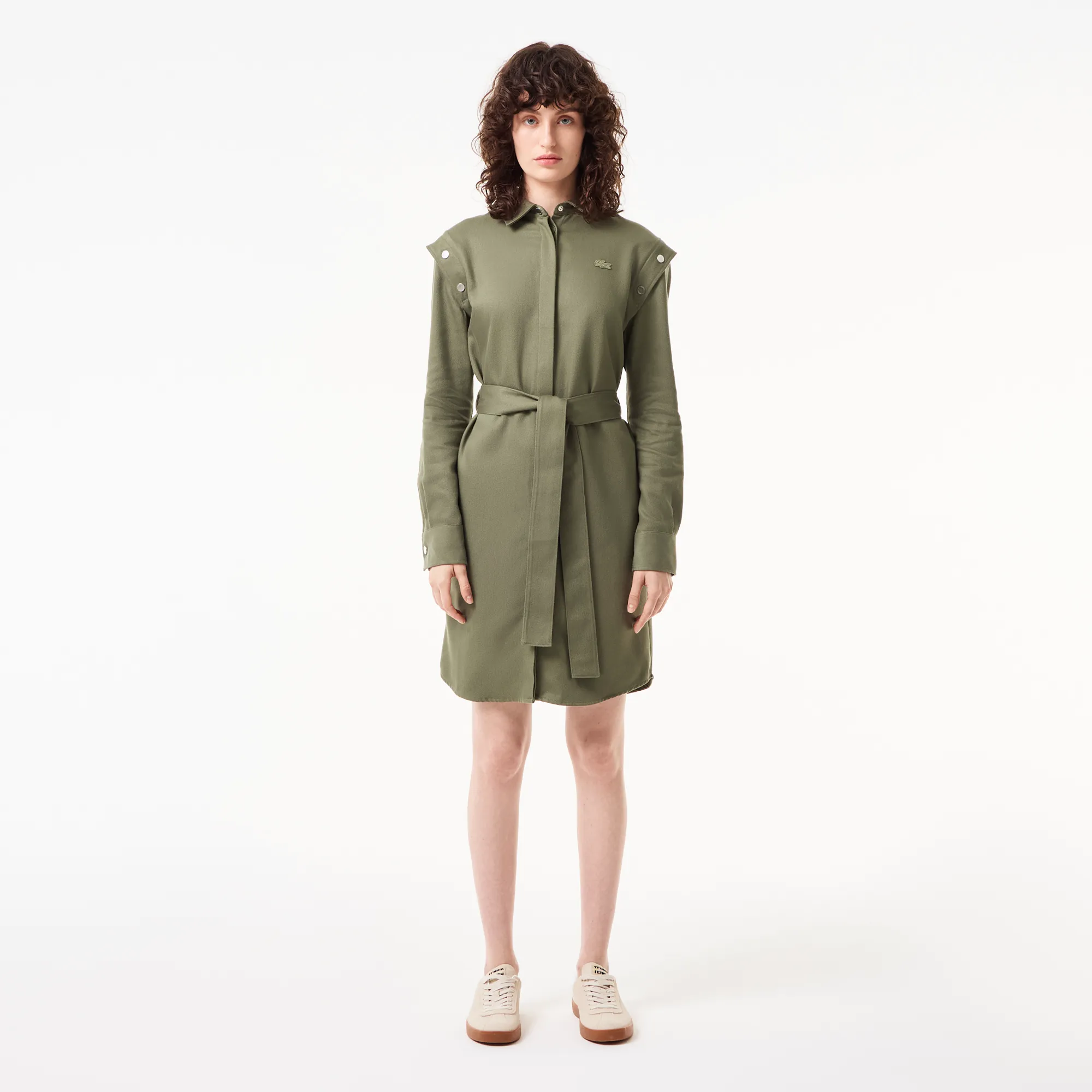 Женское платье Lacoste Relaxed Fit с поясом и длинным рукавом, хаки, арт. ef2513r