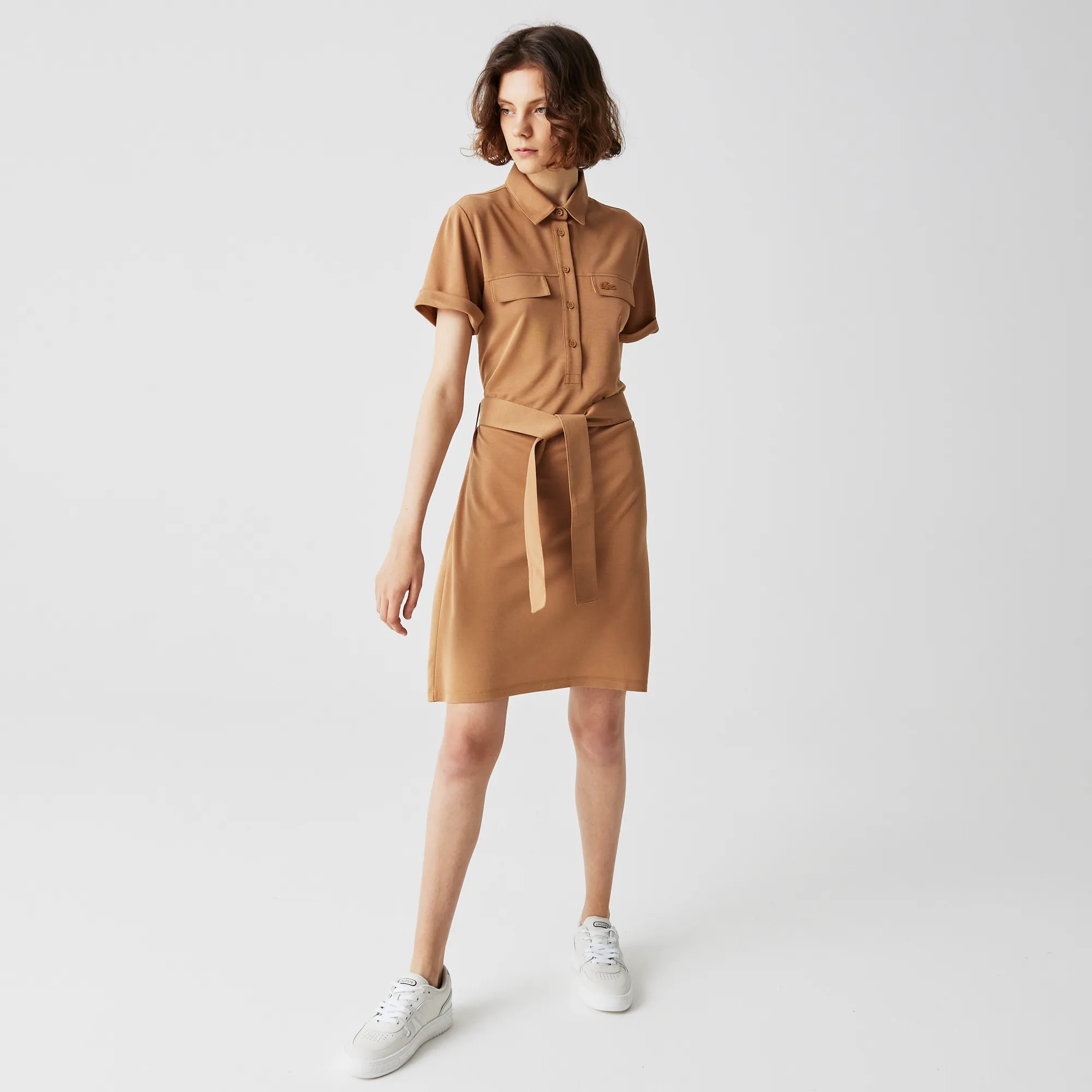Женское платье Lacoste с коротким рукавом и воротником-рубашкой, коричневый, арт. ef0121