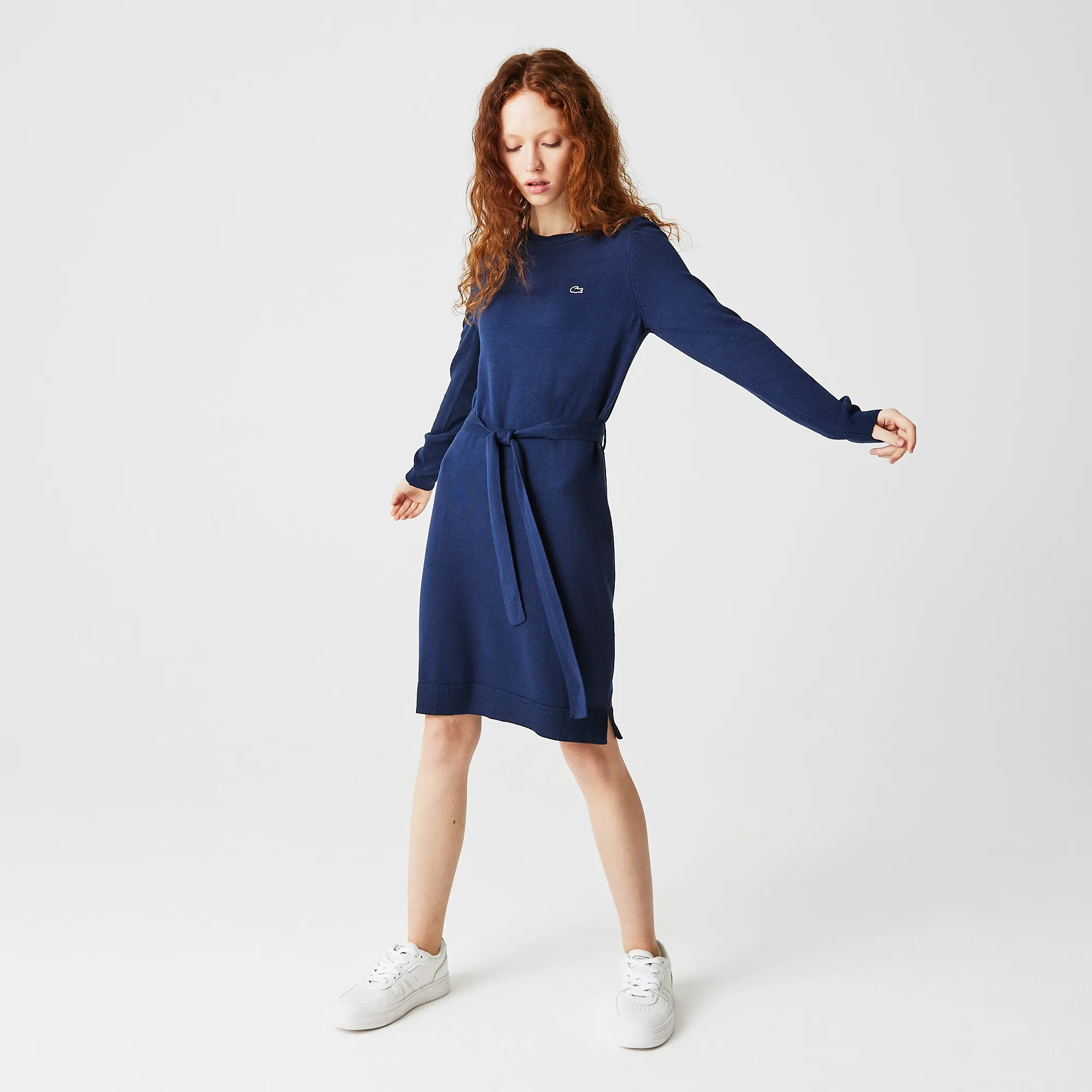 Представляем вашему вниманию элегантное женское платье Lacoste с круглым вырезом и длинными рукавами! Это воплощение спортивного шика и неповторимого комфорта, идеальное для создания стильных и расслабленных образов. Выполненное из высококачественных материалов, оно обеспечивает приятные ощущения на коже и свободу движений в течение всего дня. Классический синий цвет подчеркнет вашу индивидуальность и добавит изысканности любому ансамблю.