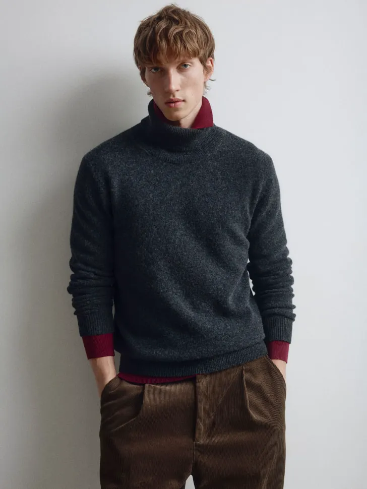 Представляем наш премиальный шерстяной свитер — идеальный выбор для холодного сезона! Этот уютный и стильный джемпер создан специально для мужчин, ценящих комфорт, тепло и безупречный внешний вид. Изготовленный из высококачественной натуральной шерсти, он обеспечивает превосходное тепло и мягкость при носке, не создавая при этом лишнего объема и сохраняя форму надолго. Его глубокий темно-серый оттенок универсален, а контрастные бордовые акценты на воротнике и манжетах добавляют нотку изысканности и подчеркивают ваш тонкий вкус.