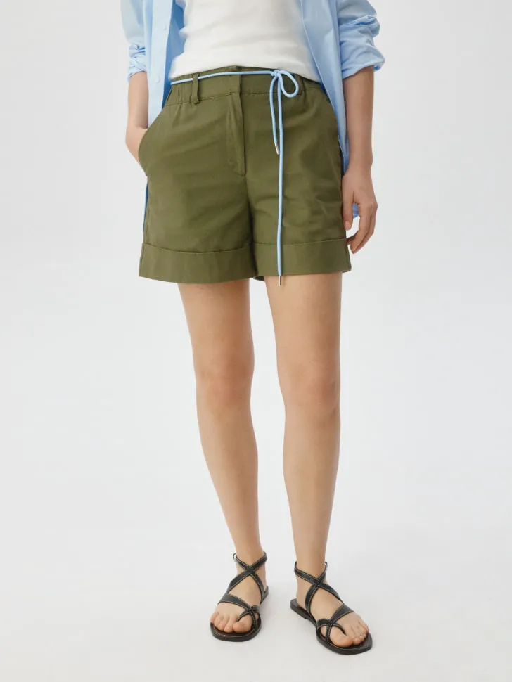 Шорты из хлопка с контрастным поясом, хаки, арт. 6631