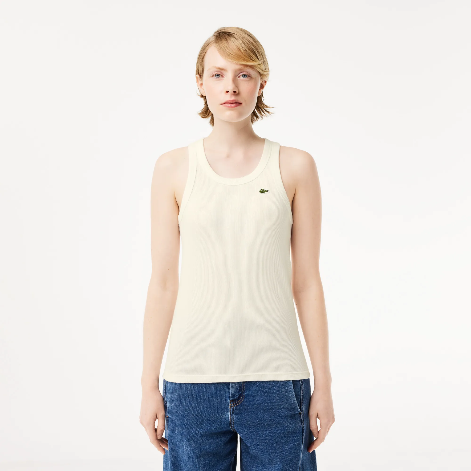 Почувствуйте непревзойденный комфорт и безупречный стиль с нашей женской облегающей хлопковой майкой Lacoste! Эта майка — идеальный выбор для современных женщин, которые ценят качество, элегантность и практичность в одежде. Выполненная из 100% высококачественного хлопка, она обеспечивает удивительную мягкость и воздухопроницаемость, даря ощущение свежести и комфорта в любую погоду.