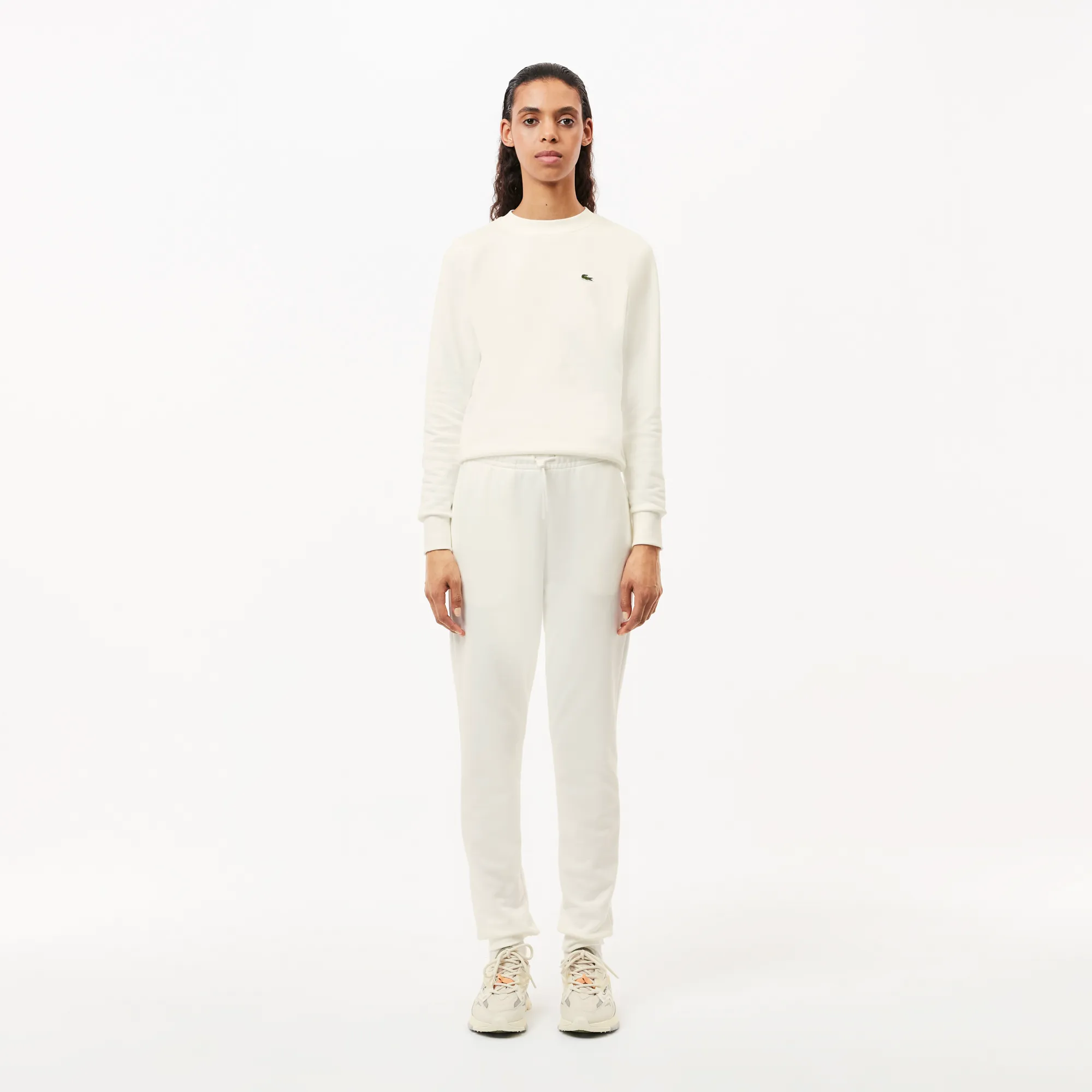 Ощутите непревзойденный комфорт и стиль с женскими флисовыми спортивными брюками Lacoste! ✨ Эти брюки — идеальный выбор для тех, кто ценит уют и качество в каждой детали. Изготовленные из мягчайшего флиса, они подарят вам невероятное ощущение тепла и нежности в любую погоду. 💖 Свободный крой обеспечивает максимальную свободу движений, делая их незаменимыми как для активных занятий спортом, так и для расслабленного отдыха дома или прогулок на свежем воздухе. Классический белый цвет и легендарный логотип Lacoste добавляют образу элегантности и узнаваемости.