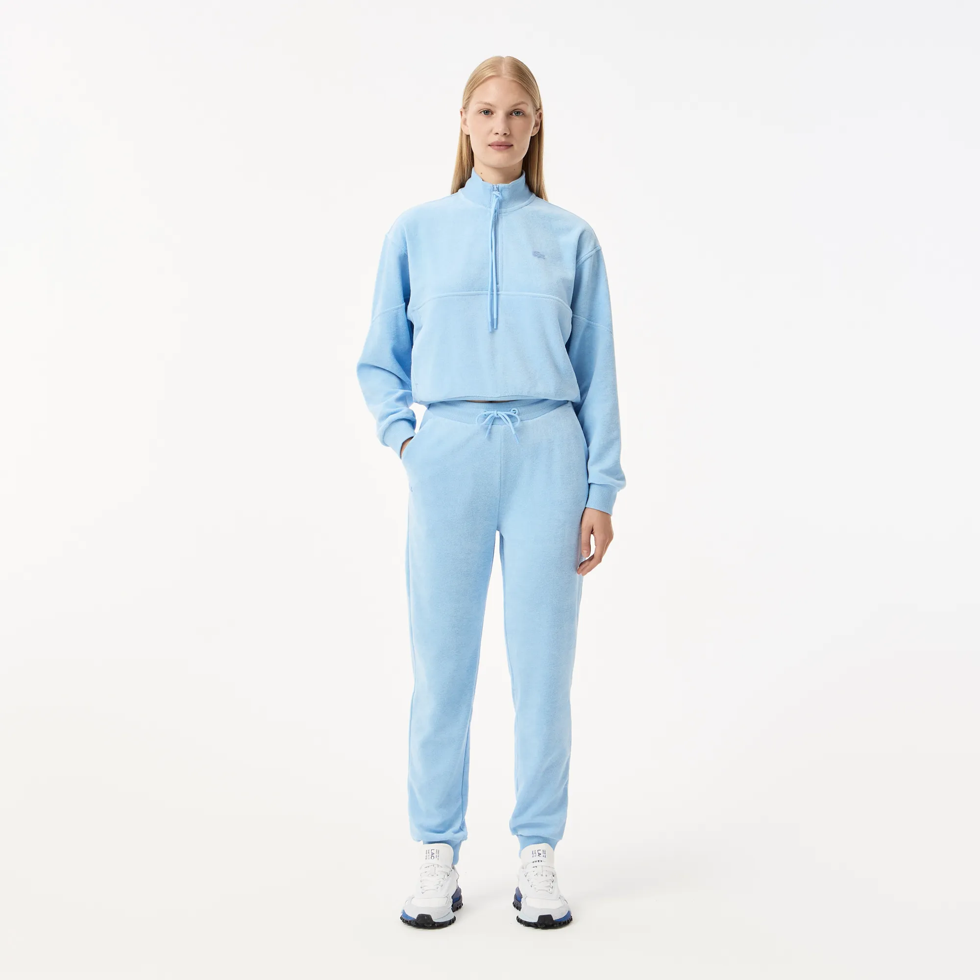Откройте для себя идеальное сочетание элегантности и функциональности с женскими спортивными брюками от Lacoste. Эти брюки, выполненные в изысканном голубом цвете, станут жемчужиной вашего спортивного и повседневного гардероба, предлагая несравненный комфорт и безупречный стиль.