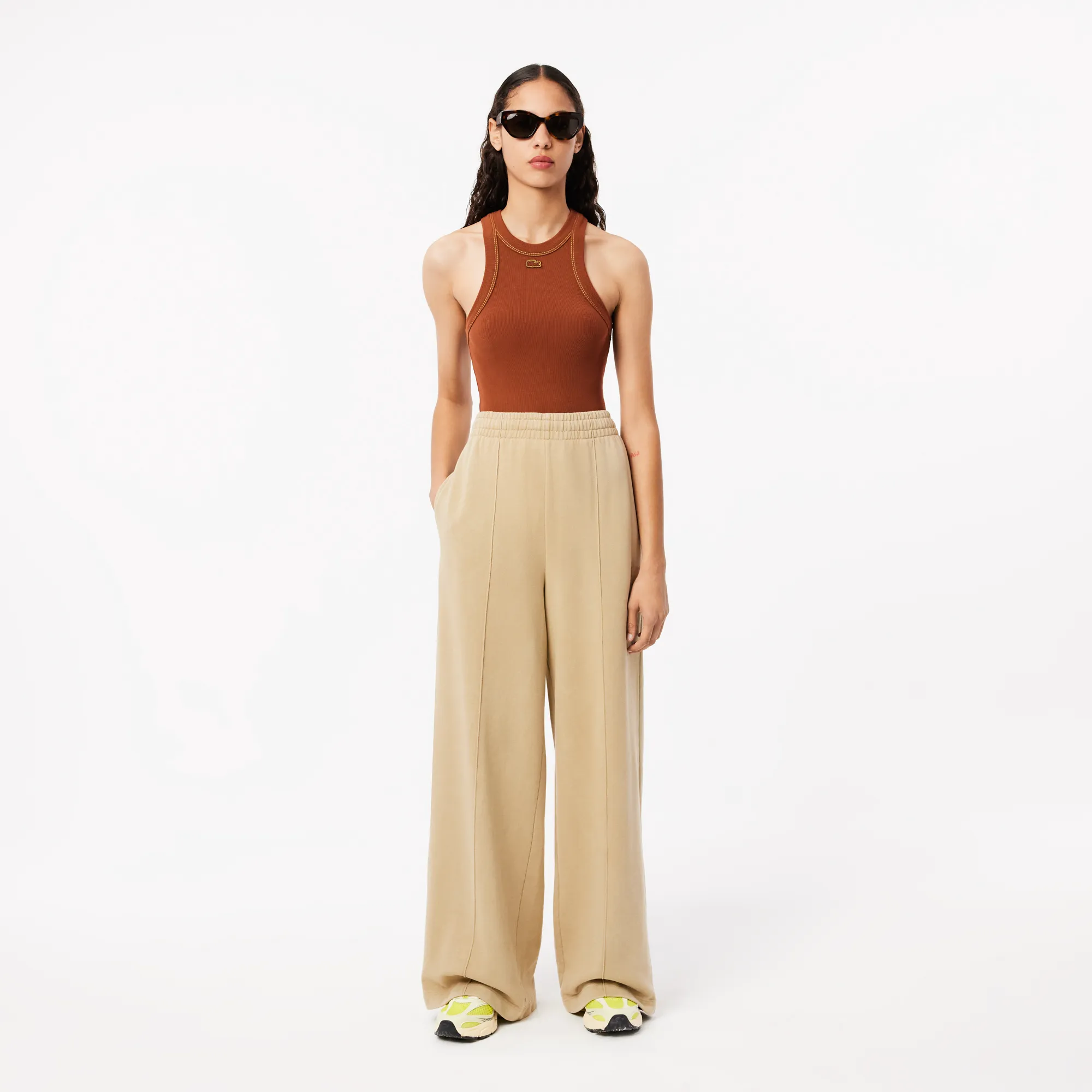 Классический бежевый оттенок подчеркивает их универсальность, позволяя легко комбинировать брюки с различными элементами одежды — от спортивных худи и топов до элегантных джемперов и футболок поло. Они идеально подходят для активного отдыха, легких занятий спортом, прогулок на свежем воздухе или создания расслабленного, но всегда стильного домашнего образа. Бренд Lacoste — это синоним качества, долговечности и узнаваемого шика. Выберите Lacoste, чтобы добавить изысканность и комфорт в свой повседневный стиль и наслаждаться каждым моментом.
