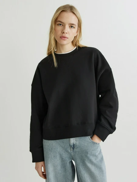 Свитшот SELA укороченный оверсайз, черный, арт. 34342