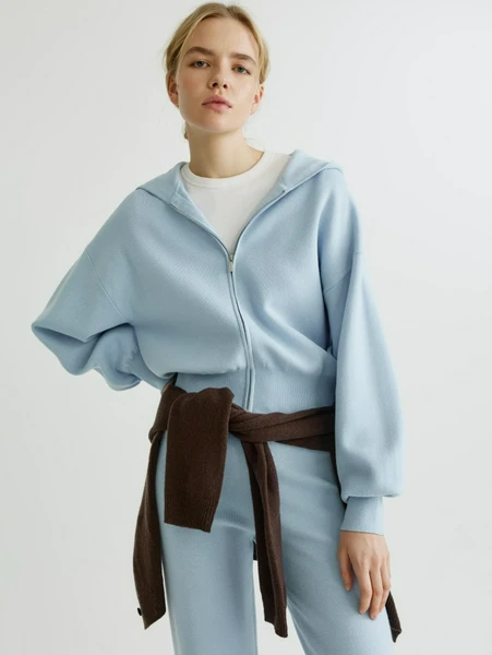 Изготовленное из высококачественного мягкого трикотажа, это худи обволакивает вас нежностью, обеспечивая максимальный комфорт в течение всего дня. Удобная молния по всей длине делает его практичным и универсальным элементом гардероба, позволяя легко адаптировать образ к меняющимся условиям. Стильный небесно-голубой оттенок придает свежести и легкости, идеально подходя для создания как расслабленных, так и более динамичных ансамблей.