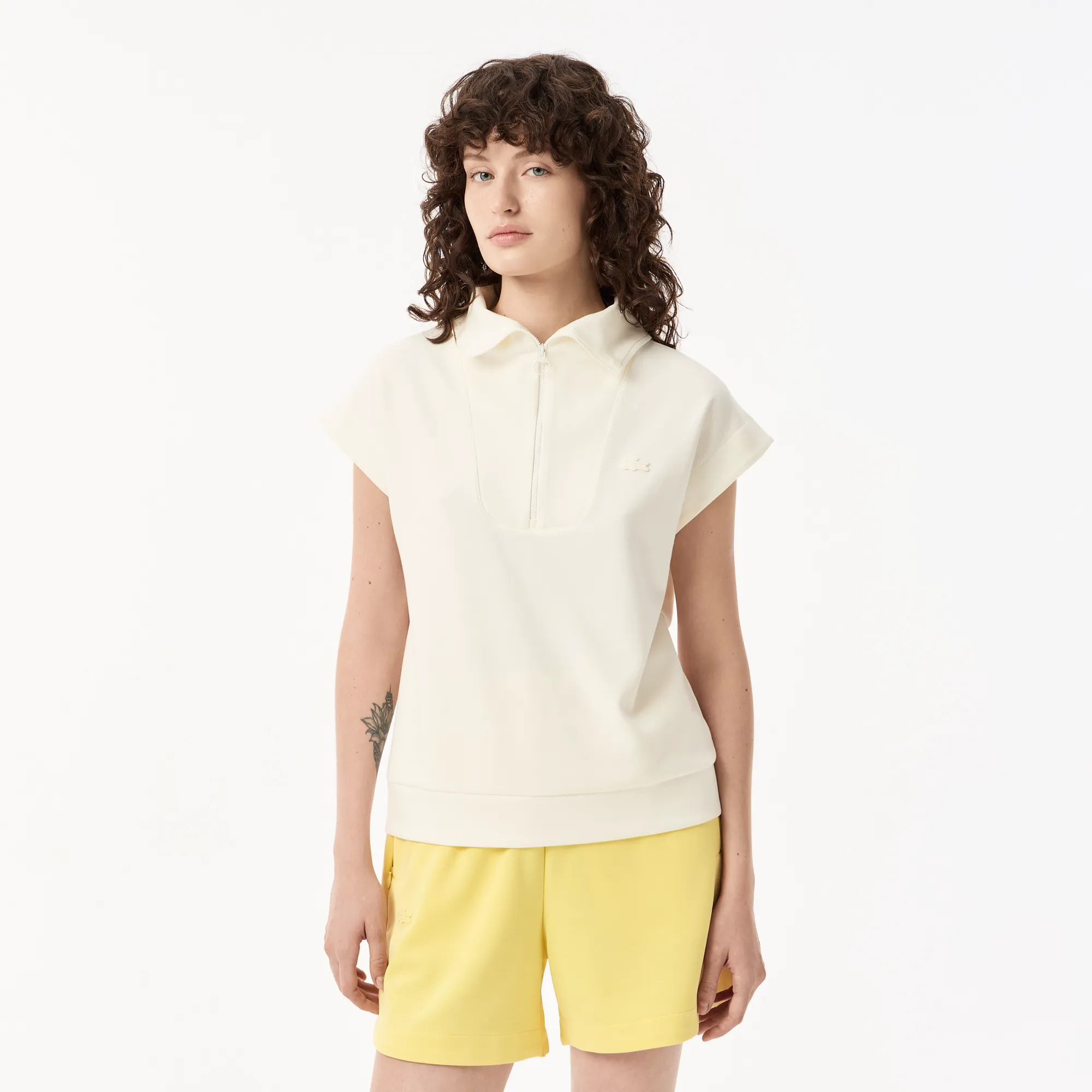 Женская толстовка Lacoste с высоким воротом на молнии без рукавов, белый, арт. sf0515