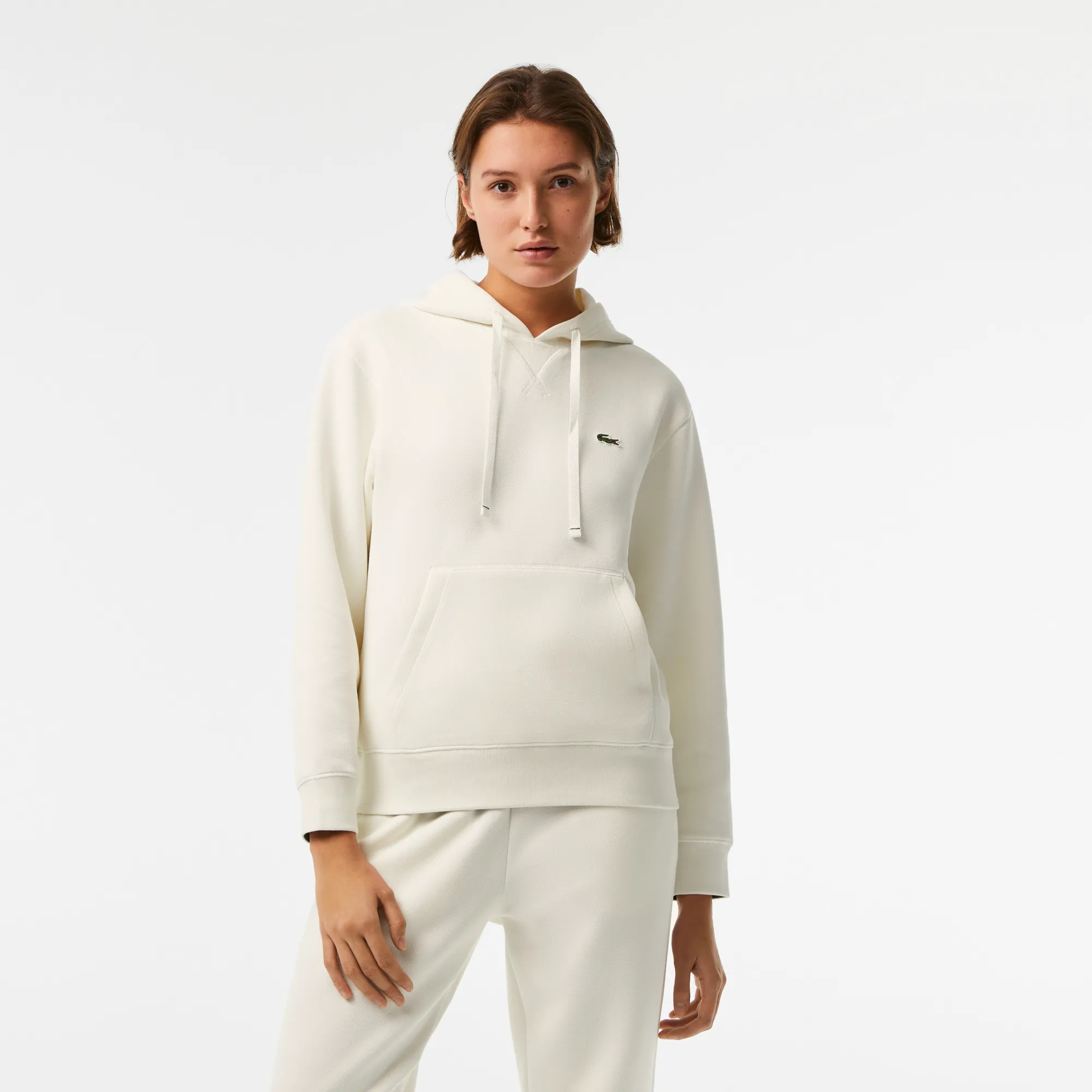 Женское худи Lacoste Loose Fit с карманом-кенгуру, белый, арт. sf7099
