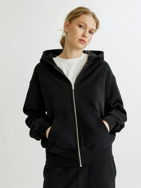 Изготовленное из высококачественного футера, оно обеспечивает невероятную мягкость и приятные ощущения при носке. Материал превосходно сохраняет тепло, позволяя чувствовать себя уютно даже в прохладную погоду. Классический черный цвет и лаконичный дизайн делают худи легко комбинируемым с различными элементами одежды – от джинсов и брюк до спортивных леггинсов. Прямой, свободный крой гарантирует полную свободу движений, а удобная молния позволяет регулировать посадку и создавать новые акценты в образе. Глубокий капюшон и карманы-кенгуру добавляют практичности и функциональности.