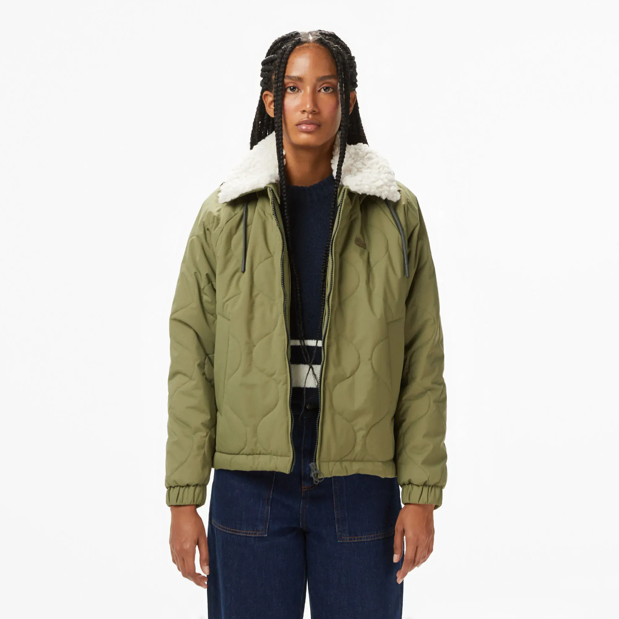 Откройте для себя изысканный стиль и непревзойденный комфорт с женской курткой Lacoste, выполненной в актуальном цвете хаки. Эта модель оснащена характерным поло-воротником, что придает ей особую элегантность и делает узнаваемой частью вашего гардероба. Идеальный баланс между спортивным шиком и повседневной практичностью – вот что вы получите, выбрав эту куртку.
