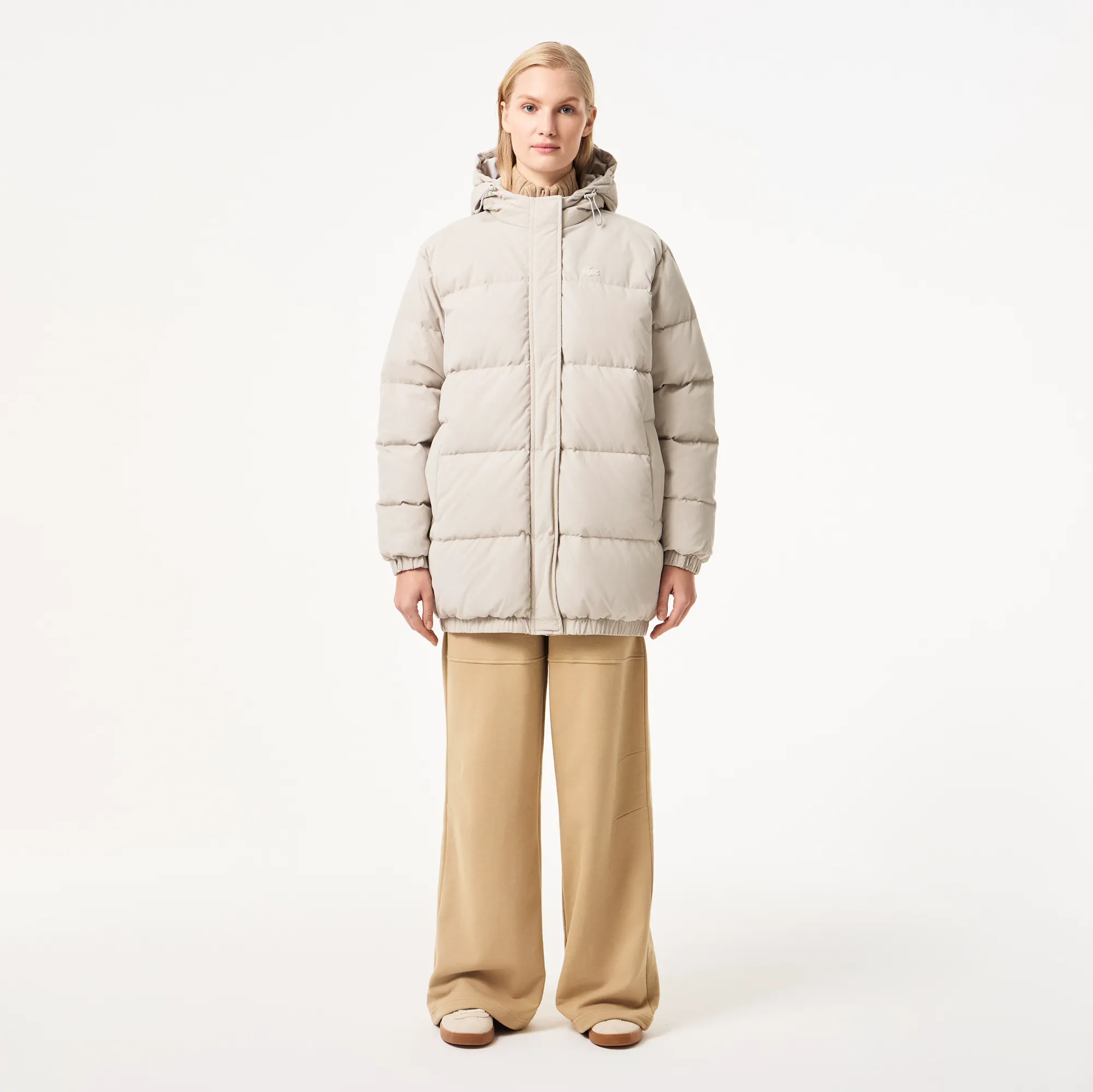 Куртка выполнена из высококачественных материалов, что гарантирует её долговечность и износостойкость. Элегантный серый цвет делает её универсальной базой для множества образов – она прекрасно сочетается как с джинсами и кроссовками для создания расслабленного повседневного лука, так и с более классическими элементами гардероба. Удобный капюшон не только добавляет изделию практичности, защищая от непогоды, но и придает ему особый шарм. Фирменный логотип Lacoste деликатно подчеркивает премиальный статус и безупречный вкус своей обладательницы. Выбирайте Lacoste – выбирайте уверенность и безупречный стиль в каждой детали!