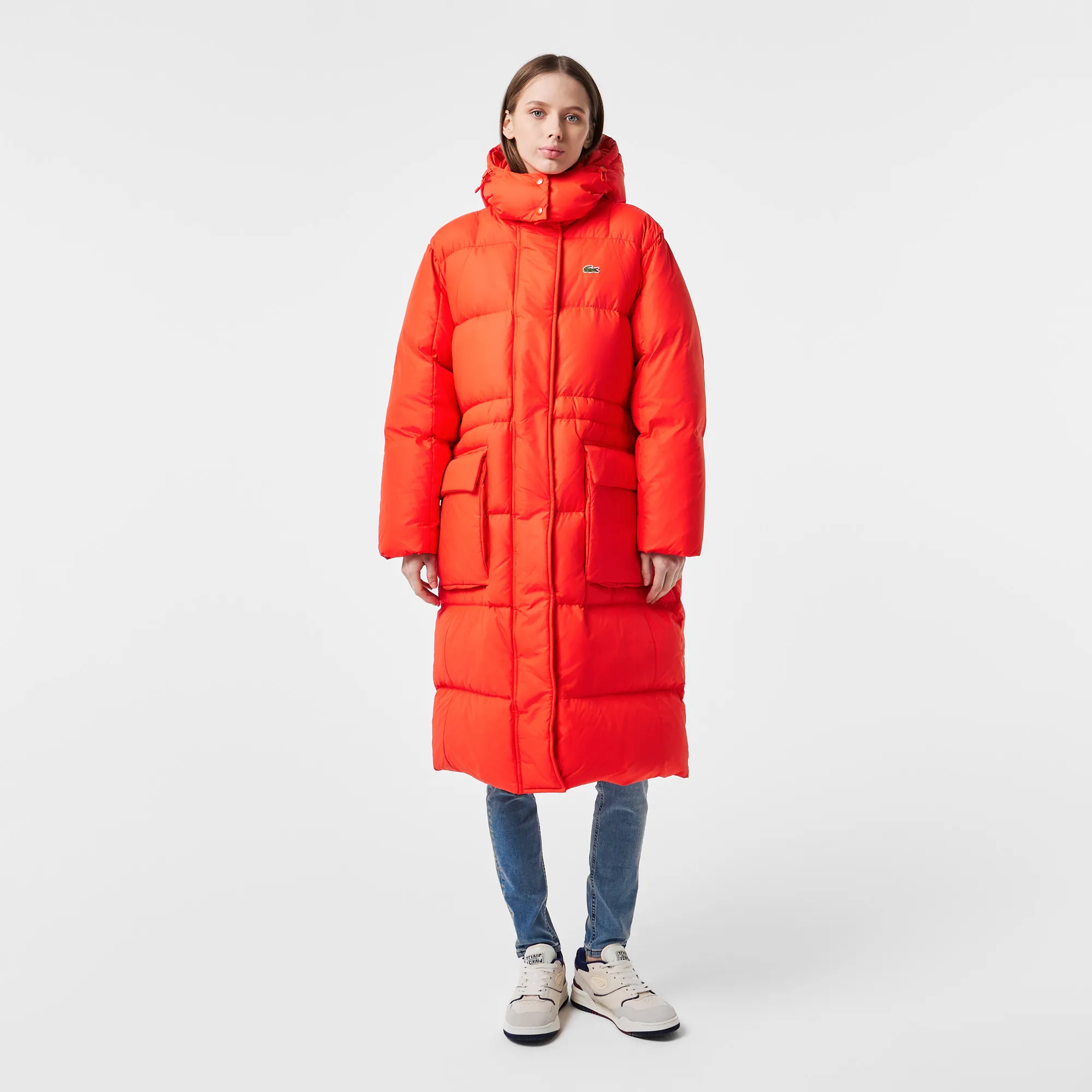Женский длинный пуховик Lacoste Oversized, оранжевый, арт. bf0741