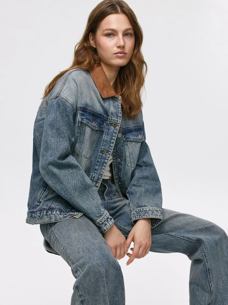 Джинсовая куртка оверсайз с вельветовым воротником, арт. 4992