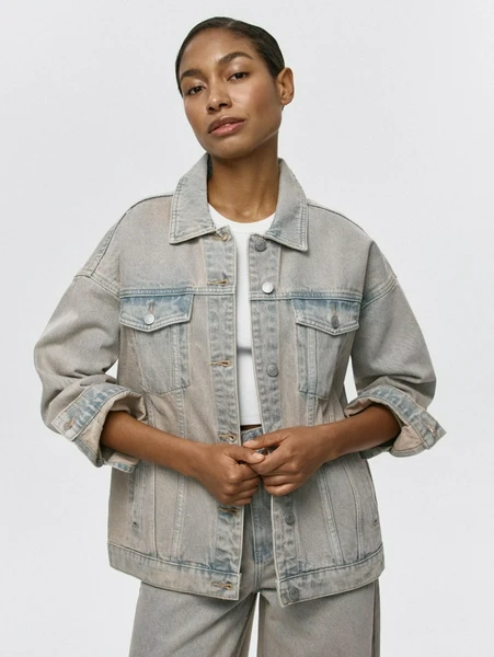 Куртка выполнена из высококачественного денима, который гарантирует долговечность и приятные тактильные ощущения. Специальная технология тинтования придает ткани легкий винтажный оттенок и фактуру, делая каждую куртку по-настоящему эксклюзивной. Благодаря свободному крою оверсайз, она идеально сидит на фигуре, не стесняя движений и позволяя создавать многослойные образы. Модель подходит для демисезонного периода и прекрасно сочетается как с повседневными джинсами, так и с более элегантными платьями.