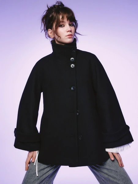 Модель отличается свободным кроем оверсайз, который не сковывает движений и позволяет экспериментировать со слоями в одежде. Глубокий черный цвет добавляет универсальности, благодаря чему пальто легко впишется в любой гардероб. Высокий воротник надежно защитит от ветра, а оригинальные широкие рукава с отворотами придают изделию особую изюминку.