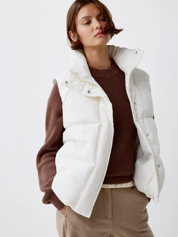 Ищете идеальное дополнение к демисезонному гардеробу? Наш стильный дутый жилет – это то, что нужно! Он обеспечит непревзойденный комфорт и надежное тепло в прохладную погоду, не стесняя при этом ваших движений. Этот легкий, практичный и невероятно универсальный жилет моментально станет вашей любимой вещью для повседневных прогулок, активного отдыха на природе или уютных встреч с друзьями. Представленный в классическом белом цвете, он легко впишется в любой ваш образ.