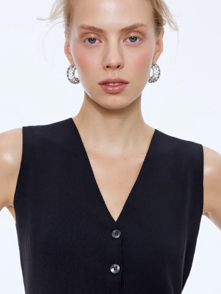 Изготовленный из высококачественного мягкого трикотажа, он обеспечивает максимальный комфорт и приятные тактильные ощущения в течение всего дня. Модель отличается глубоким V-образным вырезом и аккуратной застежкой на пуговицах, что придает ей особую элегантность. Этот жилет станет прекрасным выбором для офиса, деловых встреч, прогулок по городу или уютных вечеров. Обновите свой гардероб этой функциональной и модной вещью, которая подчеркнет ваш безупречный вкус и позволит всегда выглядеть стильно.