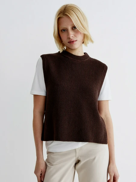 Укороченный вязаный жилет SELA, коричневый, арт. 35614