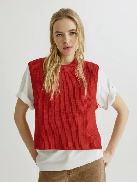 Укороченный вязаный жилет Sela, красный, арт. 34543