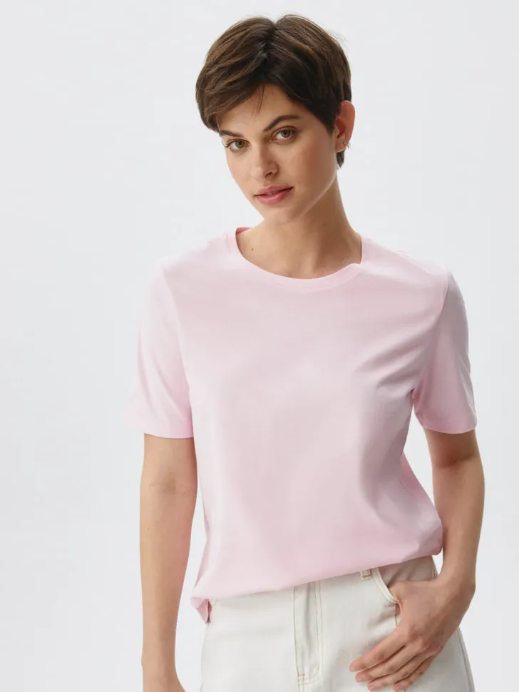 Сочетайте ее с любимыми джинсами для расслабленного лука, с юбкой для более женственного стиля или используйте как базовый слой под пиджак для офисного образа. Простота и изящество дизайна позволяют экспериментировать с аксессуарами и создавать уникальные комбинации. Футболка MARY REGULAR FIT – это не просто одежда, это ваш выбор в пользу комфорта, качества и безупречного вкуса. Добавьте эту незаменимую вещь в свою коллекцию и наслаждайтесь каждым моментом, чувствуя себя уверенно и стильно!