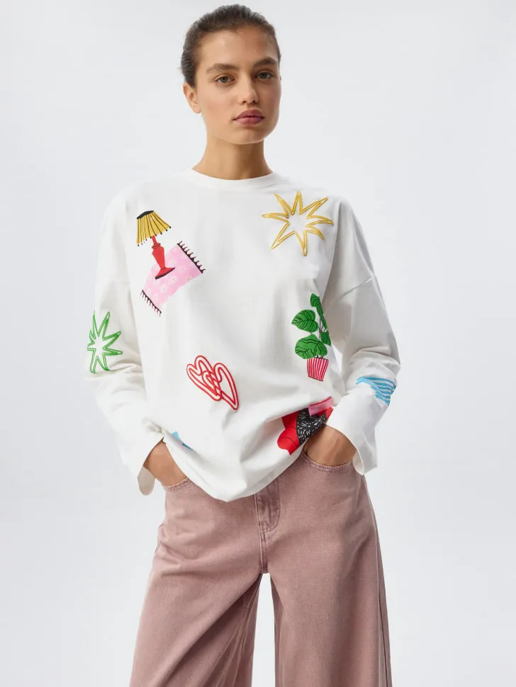 Лонгслив оверсайз с пафф-принтом и патчем, арт. 2608