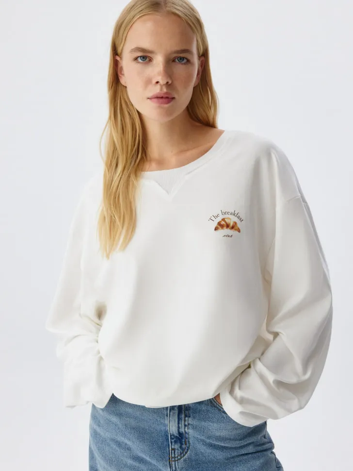 Лонгслив оверсайз с принтом, белый, арт. 3803