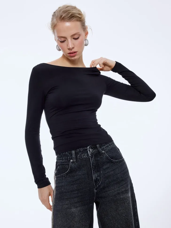 Лонгслив с вырезом на спинке, черный, арт. 15875