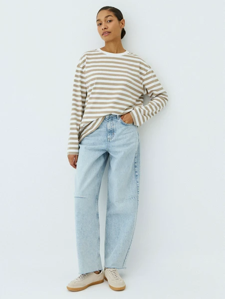 Оверсайз крой обеспечивает непринужденный и расслабленный силуэт, который идеально подходит для создания многослойных образов или носки соло. Мягкая и приятная к телу ткань гарантирует комфорт в течение всего дня, а длинные рукава и круглый вырез делают его универсальным решением для любого времени года. Классический дизайн в полоску всегда остается в тренде и легко комбинируется с различными элементами гардероба. Сочетайте его с любимыми джинсами, брюками-карго или леггинсами для создания повседневного, но при этом шикарного образа. Лонгслив ANNA OVERSIZE FIT — это идеальный выбор для вашего базового гардероба, который подчеркнет ваш индивидуальный стиль и подарит ощущение уюта.