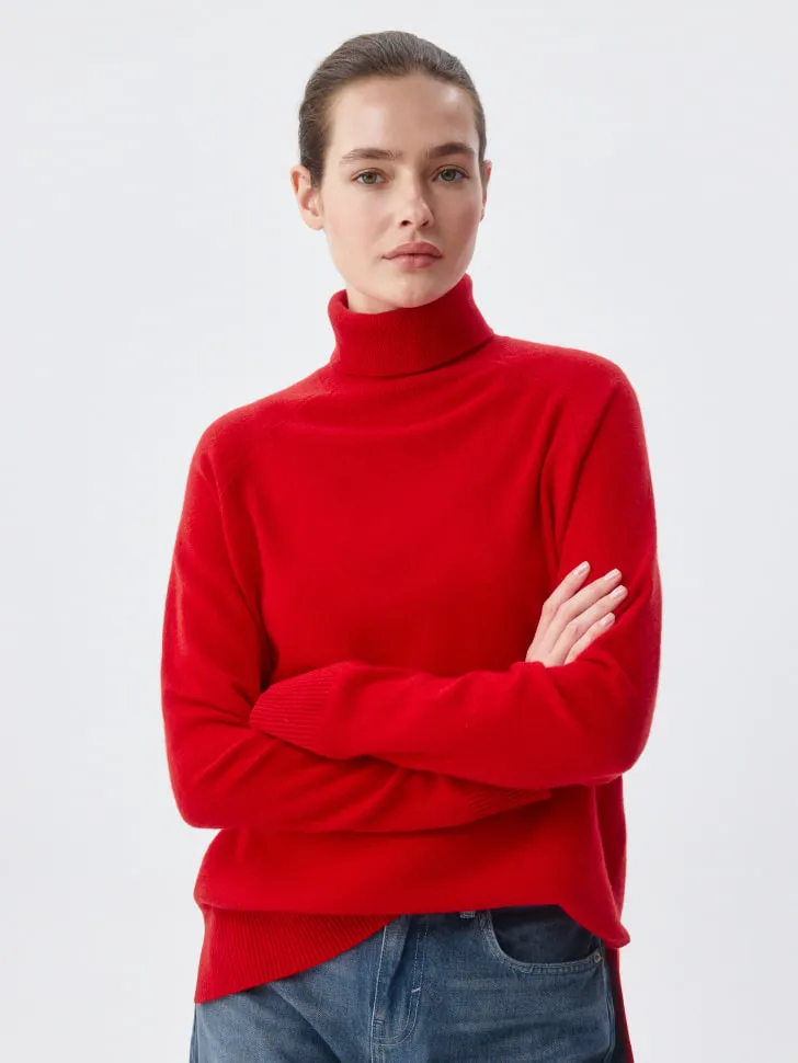 Эта водолазка выполнена в классическом крое, который безупречно сидит по фигуре, и представлена в глубоком, насыщенном красном цвете, способном оживить любой образ. Она легко сочетается как с деловыми брюками или юбками для офисного стиля, так и с повседневными джинсами для расслабленного выхода. Добавьте свои любимые аксессуары, чтобы создать уникальный и выразительный лук. Почувствуйте роскошь натуральных материалов и дополните свой образ этой элегантной и практичной вязаной водолазкой. Это больше, чем просто одежда — это ваш источник тепла и уверенности в себе.