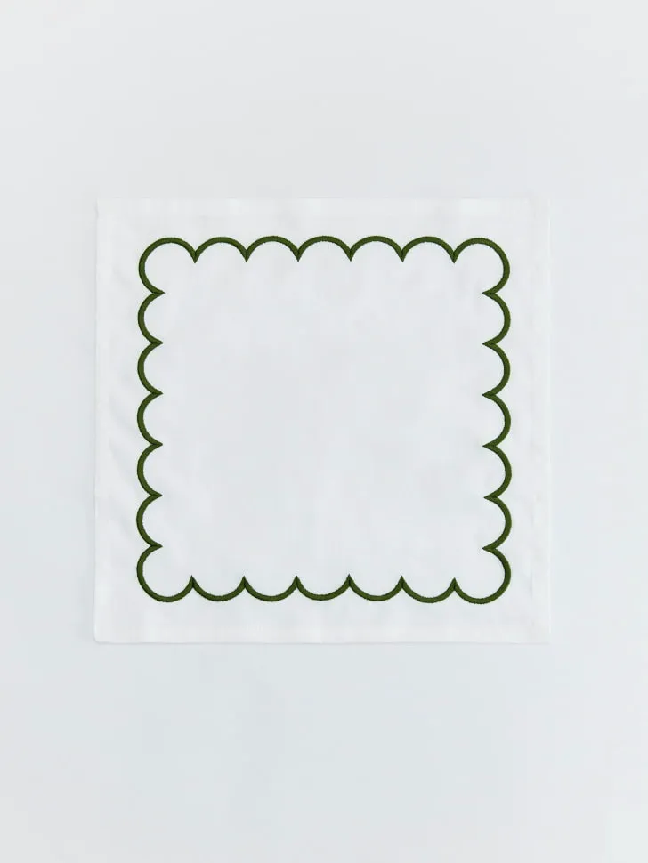 Представляем вашему вниманию изысканную сервировочную салфетку, которая станет незаменимым элементом в оформлении вашего стола. Этот аксессуар, выполненный в классическом белом цвете, дополнен элегантной волнообразной окантовкой глубокого зеленого оттенка, что придает ему особую привлекательность и свежесть. Салфетка идеально впишется как в повседневную, так и в праздничную сервировку, создавая атмосферу уюта и изысканности.
