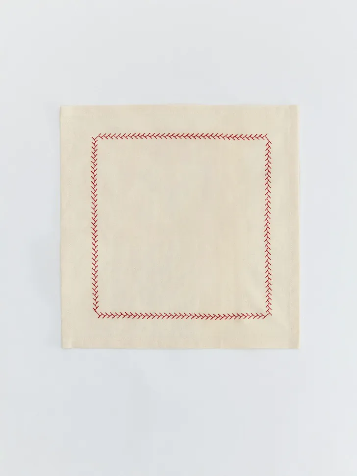 Наша салфетка выполнена из высококачественного текстиля молочного цвета, который отличается долговечностью и простотой в уходе. Особое внимание привлекает аккуратная красная отстрочка по периметру, добавляющая изделию шарм и классическую элегантность. Она идеально подойдет как для повседневных завтраков и обедов, так и для праздничных ужинов, создавая неповторимую атмосферу тепла и уюта. Легко стирается и быстро сохнет, сохраняя форму и цвет на протяжении долгого времени. С этой салфеткой каждый прием пищи превратится в маленькое торжество стиля и комфорта.