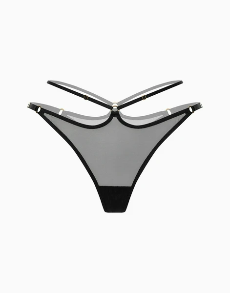 Созданные специально для современной женщины, эти черные стринги средней посадки прекрасно сидят по фигуре, обеспечивая максимальный комфорт и едва ощутимую поддержку. Основной материал — высококачественная синтетическая сетка — нежно прилегает к телу, создавая эффект второй кожи и позволяя ей дышать. Детализированный дизайн с тонкими эластичными полосками и золотистыми кольцами добавляет изысканности и шарма, превращая эту модель в идеальный выбор как для повседневной носки, так и для создания особенного образа для романтического вечера.
